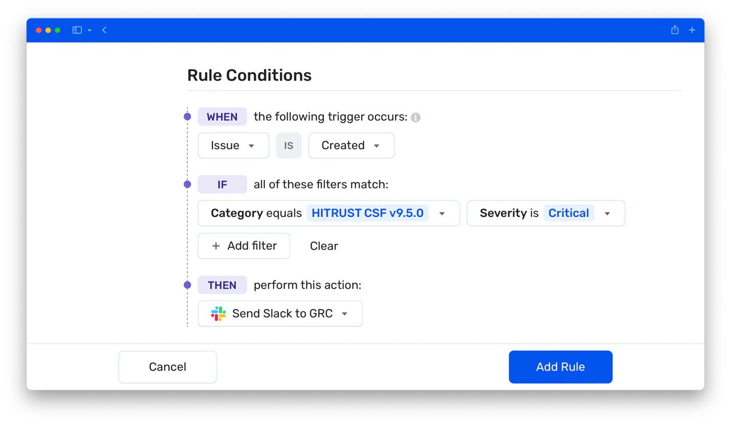 Automatiza el cumplimiento de las normas y marcos estándar, como PCI, GDPR, HIPAA, y más, así como marcos de cumplimiento personalizados.